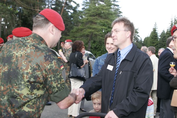 Als offizielle Vertreterin der Landesregierung von Baden-Württemberg nahm Umweltministerin Tanja Gönner an den Feierlichkeiten zum 40jährigen Bestehen des Feldjägerbataillons 452 in Stetten a.k. Markt teil. In Ihrer Rede würdigte die Ministerin die Arbeit der Feldjäger und ging auch auf die Geschichte und Tradition der Feldjäger ein, die bis in das Jahr 1740 auf den Preußenkönig Friedrich II zurückreicht. Bis heute habe sich die Arbeit der Feldjäger drastisch geändert, gerade mit Blick auf die Einsätze weltweit dankte Gönner den Soldatinnen und Soldaten für die Bereitschaft, Verantwortung für ihr Land zu übernehmen.